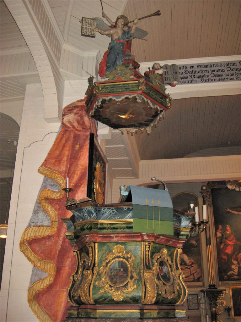 Lisäksi hän käytti aivan uusinta uutta maalityyppiä ja loi täysin uuden kädenjäljen kirkkomaalarina . Kirkosta löytyi muutakin uutta tietoa ja näkökulmaa aiempaan aineistoon tutkimuksieni perusteella, pystyin vahvistamaan että triptyykin maalannut taiteilija olikin itse maalannut myös alttarikaiteet ja pylväät. Nämä oli kuuluisa kirkkomaalari maalannut sen ajan aikakaudelle tyypililsesti vahvasti ylisiottaen alkydimaalilla päälle , mitä ilmeisemmin seurakunnan tahdosta. Asiakas tilasi uudistustyön ja kirkko jatkoi toimintaansa.