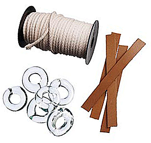 Rullaverhon osat , lasirinkula, nahkapaloja sekä villanauhaa tai puuvilla nauhaaa